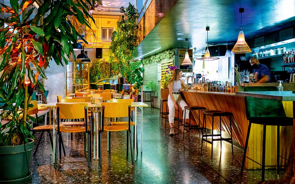 Maybe not the most focused on coffee as in specialty coffee with rare beans, but a well-rounded café/bistro/bar concept that adds cool vibes to its quiet quarter in Athens: KINONO. On the ground floor of a residential building, its 'mid-century'-esque aesthetic and a lot of green set the scene for easy-going Espresso Tonics and, as always in the city, great smaller and bigger snacks.