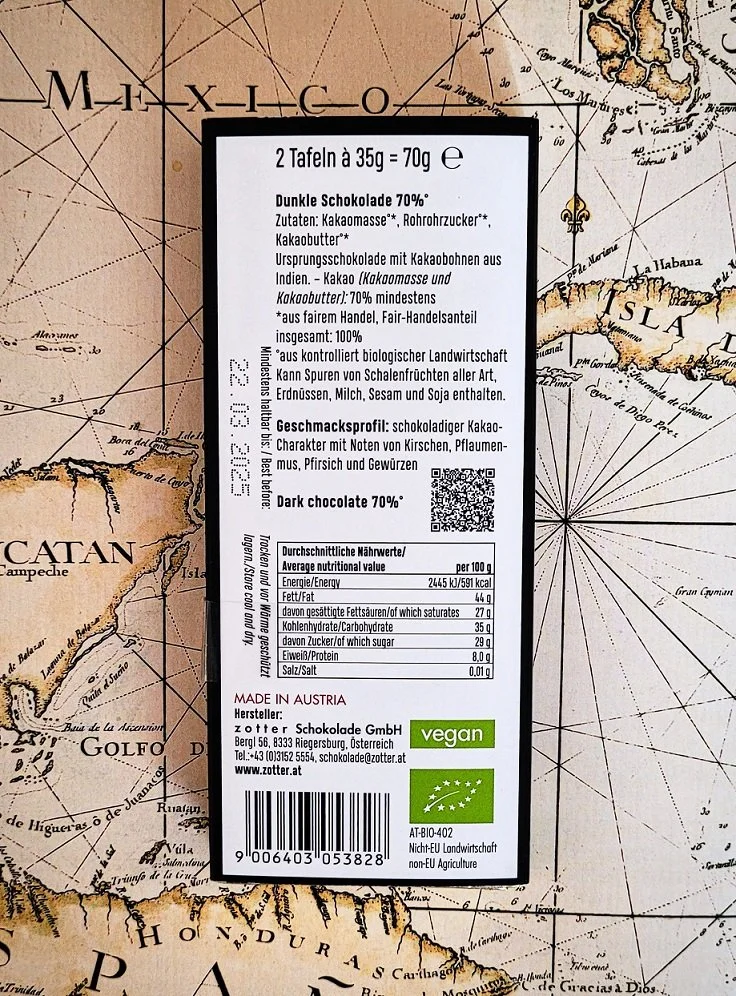 Zotter - Indien - Dunkle Schokolade - 70% - Batch 22.03.2025